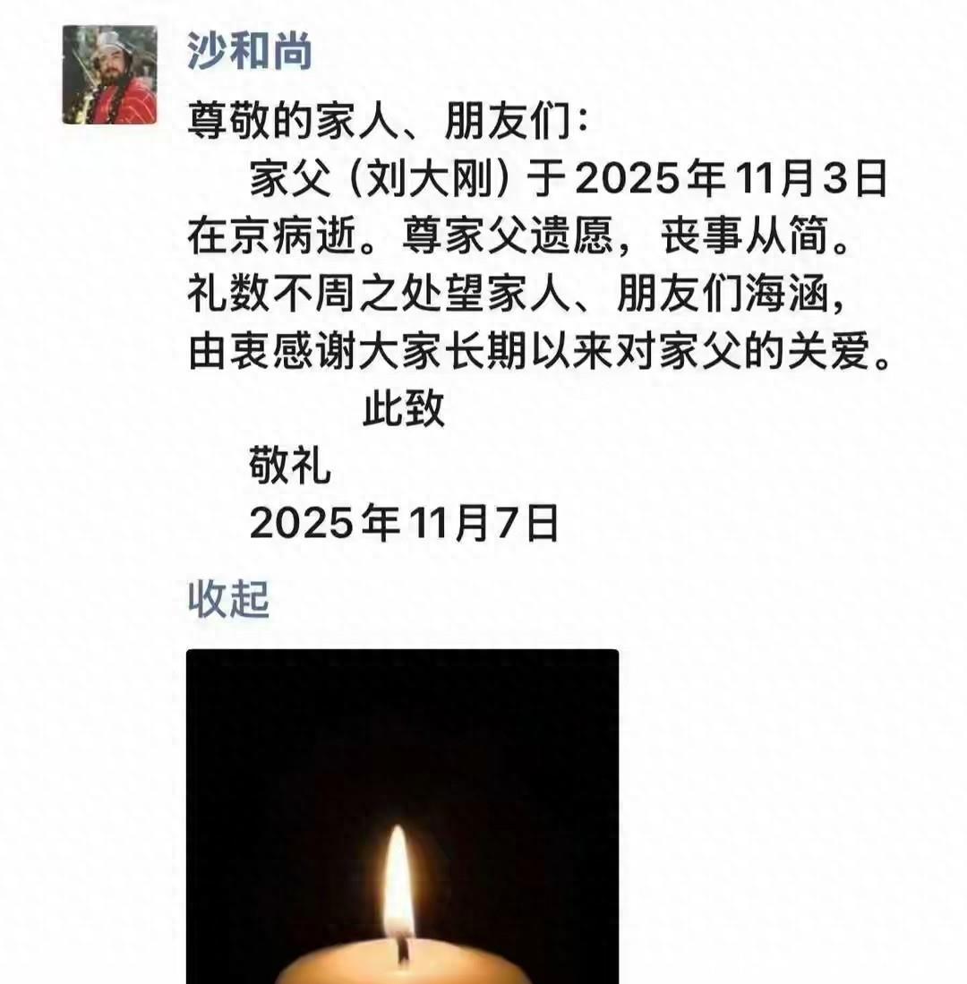 谁能想到啊,2025年11月3号北京传来的消息,让全网8090后深夜里集体破防!曾扮演沙僧的刘大刚老先生病逝,86版《西游记》的师徒四人,这下是真的凑不齐了,“沙僧”这个角色,也成了难以复刻的经典记忆。